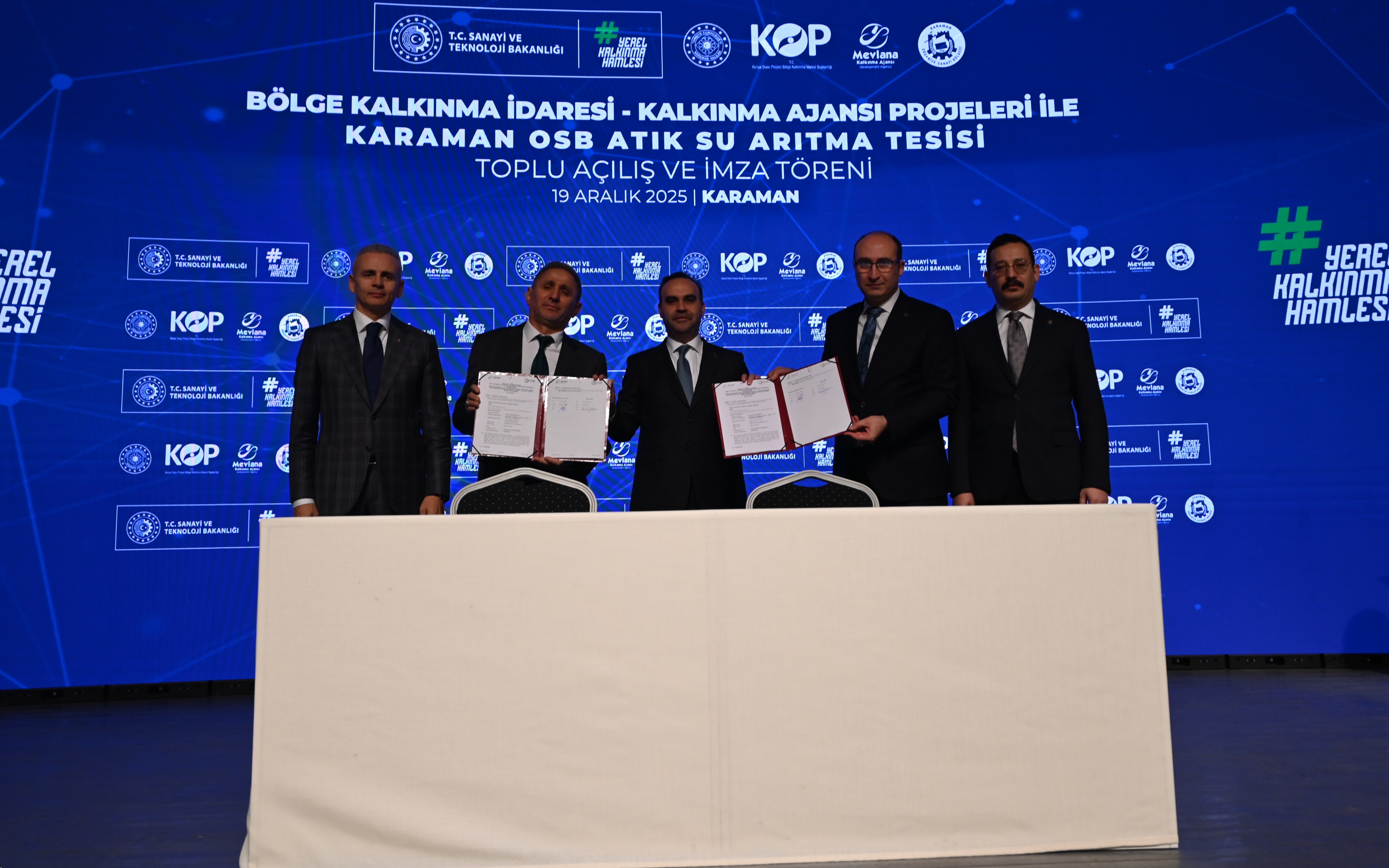 Sanayi ve Teknoloji Bakanı Mehmet Fatih Kacır, Mevlana Kalkınma Ajansı ve KOP Bölge Kalkınma İdaresi Projeleri ile Karaman Organize Sanayi Bölgesi Atık Su Arıtma Tesisi’nin Toplu Açılış ve İmza Töreni’ne katılım sağladı.